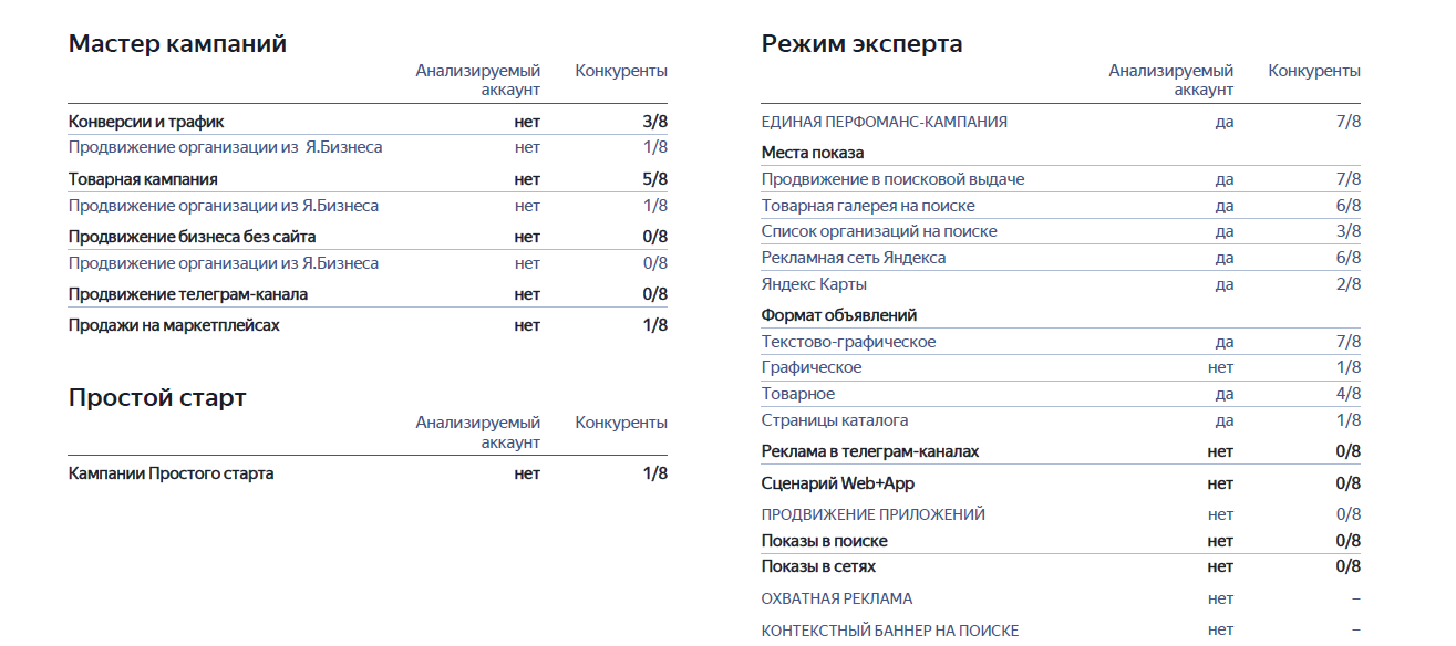 - Вы не используете Мастер кампаний (у конкурентов 3/8 используют).