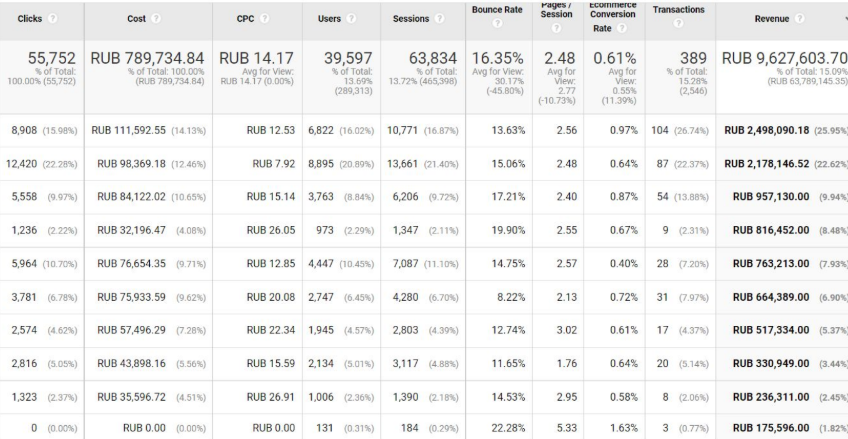 - Внедрил правильную передачу данных о транзакциях и revenue через Google Ads и Google Analytics.