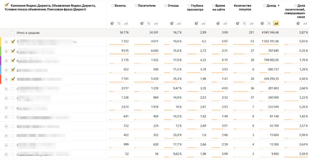 - Разделил брендовые, НЧ, СЧ и ВЧ запросы по разным кампаниям с разными стратегиями ставок.